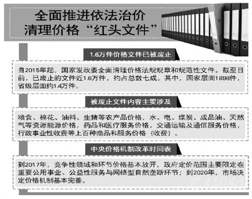 近日,國家發(fā)改委價格司又向社會公布了一批廢止和保留價格法律法規(guī)文件目錄。記者了解到,近兩年內(nèi)被廢止的價格法規(guī)規(guī)章和規(guī)范性文件已達1.6萬件。