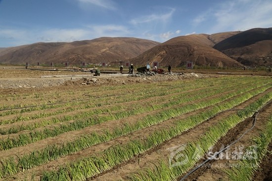 本網(wǎng)訊(張德禧 徐登林) “3月份,我家的9畝土地就流轉(zhuǎn)給農(nóng)場(chǎng)了,每畝每年630元,我每月在大蔥基地打工有2000元收入,老公出去務(wù)工,一家人一年的收入增加還學(xué)到技術(shù)?!?/span>5月16日中午,道孚縣陽(yáng)光燦爛,照耀著高原漸綠的青草,也喚醒了田野里變青的蔥苗,48歲的麻孜鄉(xiāng)溝爾普村村民青芝翁姆在大蔥基地邊澆水邊說(shuō),大蔥再有一個(gè)多月就能上市了。