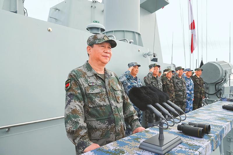 習(xí)近平的檢閱為受閱部隊(duì)開展實(shí)戰(zhàn)化軍事訓(xùn)練注入了強(qiáng)大動(dòng)力。受閱部隊(duì)帶著黨和人民的重托,迅即開赴訓(xùn)練海域,一場(chǎng)跨區(qū)實(shí)兵演練在海上全面展開。