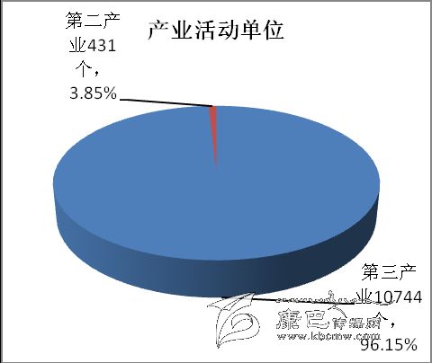 在有證照個體經(jīng)營戶中,第二產(chǎn)業(yè)占3.01 %;第三產(chǎn)業(yè)占96.99 %。有證照個體經(jīng)營戶從業(yè)人員中,第二產(chǎn)業(yè)占3.82 %,第三產(chǎn)業(yè)占96.18 %。