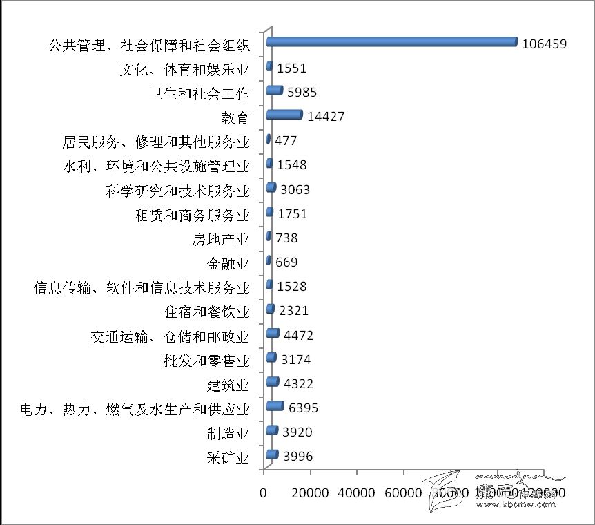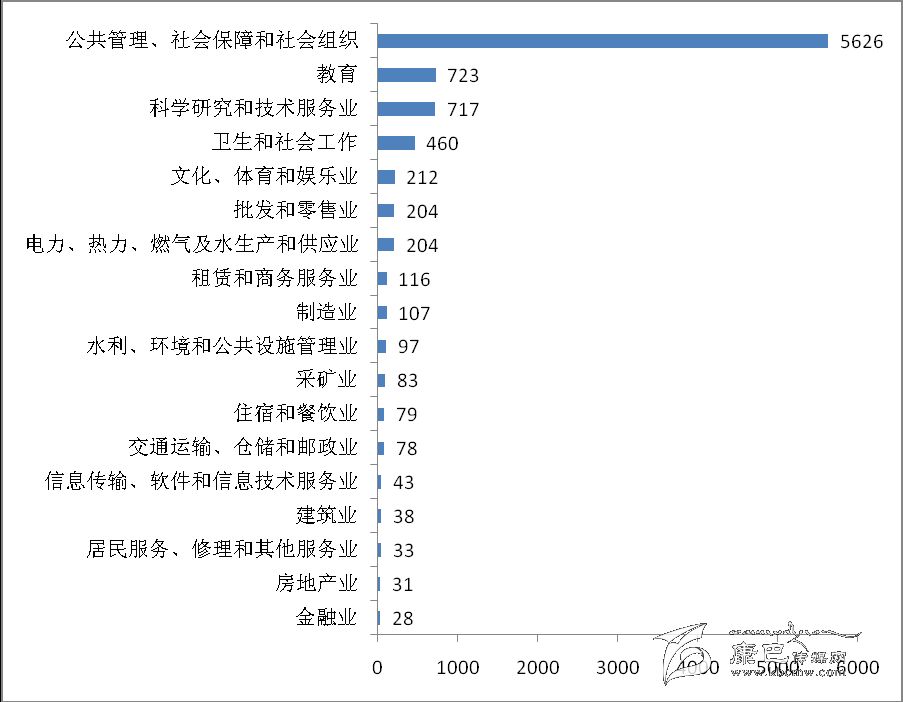 2013年末,在第二產(chǎn)業(yè)和第三產(chǎn)業(yè)法人單位中,位居前三位的行業(yè)是:公共管理、社會保障和社會組織 5626 個,占62.87 %;教育723個,占8.08 %;科學(xué)研究和技術(shù)服務(wù)業(yè)717個,占8.01 %。在有證照個體經(jīng)營戶中,位居前三位的行業(yè)是:批發(fā)和零售業(yè)8349個,占41.69 %;交通運(yùn)輸、倉儲和郵政業(yè)6462個,占32.27 %;住宿和餐飲業(yè)3102個,占 15.49 %(詳見表1-2)。