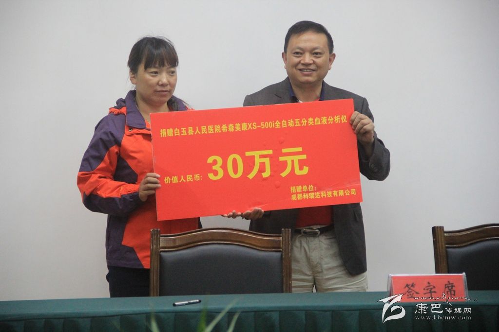 在白玉期間,雙方就對口幫扶項目進行了對接,武侯區(qū)總工會向白玉縣總工會交接了10萬元對口幫扶資金,武侯區(qū)工商聯(lián)(總工會)與白玉縣工商聯(lián)簽訂了幫扶協(xié)議,成都科瑞達科技有限公司向白玉縣醫(yī)院捐贈價值30萬元XS-500i血液分析儀一套,成都八益家具股份有限公司向白玉縣昌臺衛(wèi)生院捐助價值70萬元的物資,與該縣團委達成暖冬行動協(xié)議,簽訂民營企業(yè)結(jié)對幫扶貧困學生協(xié)議,武侯區(qū)工商聯(lián)向阿察九年一貫制學校捐贈了23000元現(xiàn)金和100余套書籍,武侯區(qū)三臺商會向蓋玉小學捐贈5臺電腦。雙方達成共識,今后在其他領(lǐng)域選擇性進行幫扶。