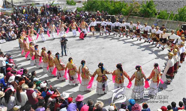 “在九步鍋莊之鄉(xiāng)曲雅貢鄉(xiāng),深受群眾喜愛的州級非物質文化遺產九步鍋莊熱鬧開賽;在生態(tài)移民開發(fā)區(qū)因都壩文化活動室,一群小伙和姑娘們踏著歡快的節(jié)奏,跳起了歡樂的九步鍋莊,每一個正在歡樂舞動的群眾都流露著歡樂的笑臉。筆者從表演隊伍中看到一個喜人的變化,和往年不同,今年的隊伍中以年輕人為主,老人們更多的是坐在場下第一排觀摩。“從今年開始,我們就只是坐在臺下指導了,年輕人些學會了,我們也高興,也有了傳承人了”,壩區(qū)3號組的彭措老人是九步鍋莊的老藝人之一,采訪中,他告訴筆者,他最大的愿望是九步鍋莊能在一代代傳承的基礎上,走出大山,擺脫“養(yǎng)在深閨人未識”的境遇。