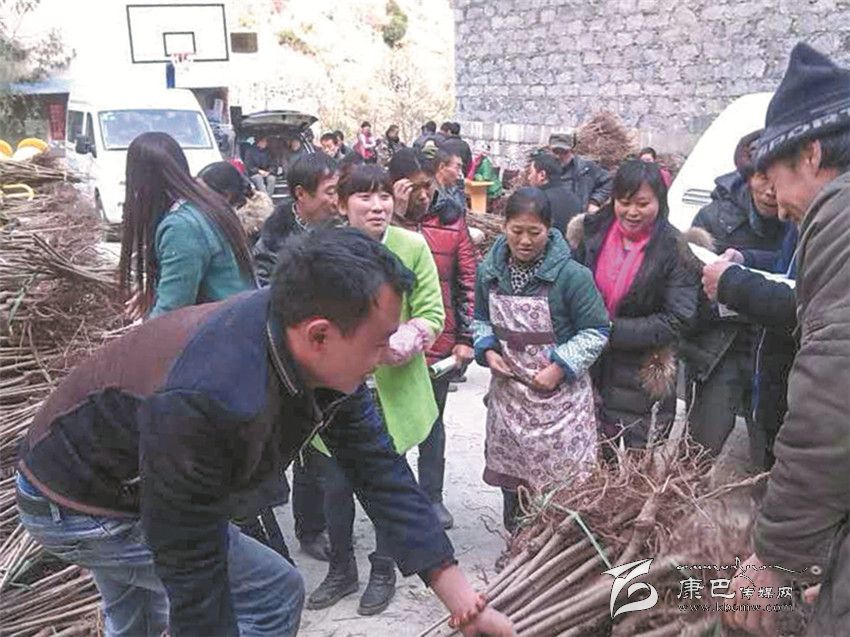 給村民分發(fā)果樹(shù)苗。