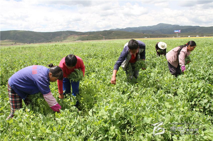 據(jù)理塘縣世界高城天然食品有限公司負(fù)責(zé)生產(chǎn)的燕賢能介紹,碗豆苗7月25日開始上市,10天一個采摘周期,由于是試種面積推廣不多,每天處理1500斤左右,經(jīng)凍庫預(yù)冷后運往臺灣等地,因沒打農(nóng)藥,完全是無公害種植,到臺灣的餐桌要值40元/斤。公司總經(jīng)理周宴平算了一下賬,目前已有20噸豌豆尖“飛”上了臺灣、香港、北京、成都的餐桌。三個月下來,公司將實現(xiàn)收益500多萬元,為兩個貧困村增收30多萬元,當(dāng)?shù)?1戶貧困戶全家進(jìn)農(nóng)場務(wù)工年收入將達(dá)4萬元。