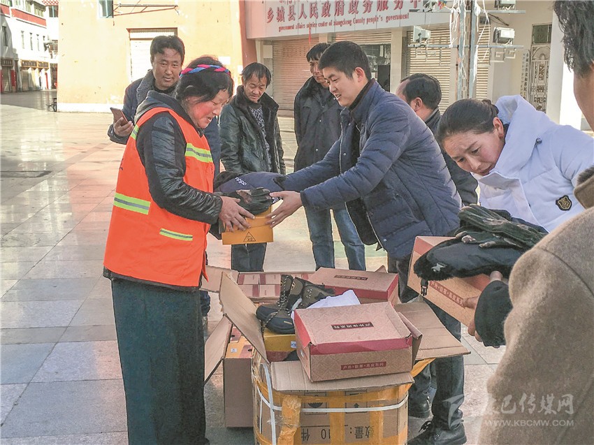 本網(wǎng)訊(縣團(tuán)委 供稿)近日,鄉(xiāng)城縣群團(tuán)組織在香巴拉休閑廣場(chǎng)開展“關(guān)愛環(huán)衛(wèi)工,真情送溫暖”活動(dòng),將57套價(jià)值13000余元的冬帽、冬靴、手套送到每一位環(huán)衛(wèi)工人手中,讓“城市美容師”們?cè)诼《竟?jié)感受到濃濃暖意。