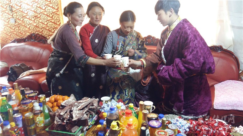 根秋卓瑪一家是俄多瑪鄉(xiāng)的村民,初一一大早,根秋卓瑪就穿上節(jié)日的盛裝?!敖裉煳覀円涯曦洈[放出來,等親戚朋友祈?;貋?,我們一家就會圍坐在一起,拉著家常、吃著美食、唱著山歌,高高興興歡度藏歷新年。”根秋卓瑪說。