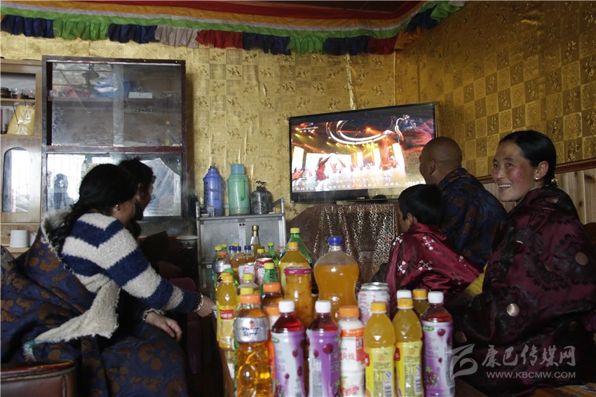 家里鋼爐中的火還在熊熊燃燒,滾燙的奶茶冒著陣陣香氣,藏桌上擺放的各種糖果、飲料和零食,顯現(xiàn)出這個(gè)牧民家庭已經(jīng)衣食無(wú)憂(yōu)。50寸大彩電播放著精彩的文藝節(jié)目,讓這個(gè)家庭感受到了文藝帶給他們的快樂(lè)。眼前的一切,也讓記者在藏區(qū)牧民家中感受到了濃濃的年味。