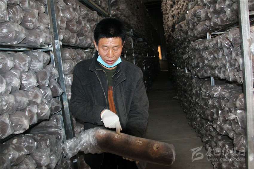 村民在加工菌棒。