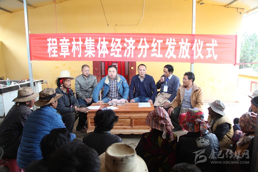 4月27日下午,雅江縣米龍鄉(xiāng)程章村熱鬧非凡、喜氣洋洋。 剛吃過午飯,村民們就齊刷刷地聚集到了村民活動室,等待村集體經(jīng)濟(jì)首次分紅。