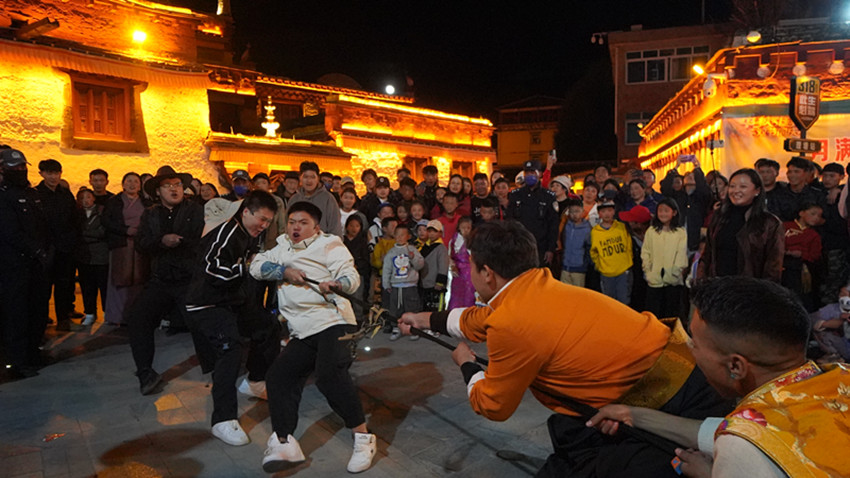 “江流宛轉(zhuǎn)繞芳甸,月照花林皆似霰……”農(nóng)歷八月十五,月色籠罩下的勒通古鎮(zhèn)·千戶藏寨,流淌著中華詩歌的悠悠古韻。9月29日晚,“我們的節(jié)日·中秋”新時代文明實(shí)踐系列活動之“月滿理塘、愛我中華”文藝展演,引得群眾和游客爭相拍照。藏戲舞蹈“扎西雪巴”、藏族踢踏舞讓觀眾領(lǐng)略到濃郁的民族風(fēng)情,詩朗誦伴舞《我愛你,中國》引人入勝……一場場精彩演出展現(xiàn)了傳統(tǒng)文化的多重魅力。