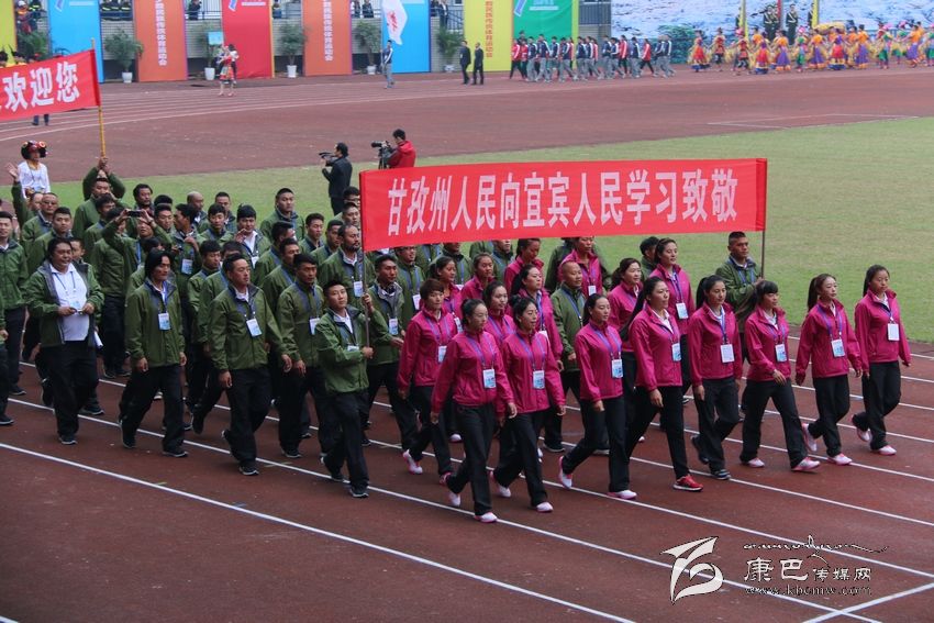 開幕式上,作為下一屆民運(yùn)會(huì)的承辦方,我州代表團(tuán)打出了“四年以后甘孜見,甘孜人民歡迎你”的橫幅。