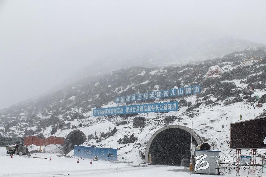 從雀兒山五道班駐地沿著崎嶇的山路下降至海拔4270米,一個浩大的工程正在緊鑼密鼓地進行中。在這座號稱“雄鷹都飛不過的山峰”里,“世界第一高海拔隧道”——雀兒山隧道雛形已現(xiàn)。