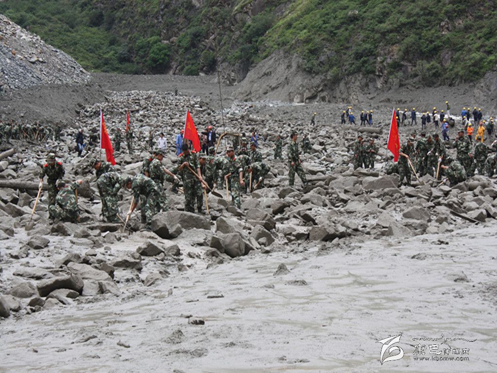 武警支隊官兵參加康定“7.23”泥石流搶險救災(zāi)。