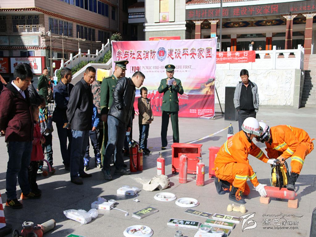 在“119”到來(lái)之際,為提高群眾消防安全意識(shí),積極查找身邊火災(zāi)隱患,州公安消防支隊(duì)于8日在康定情歌廣場(chǎng)開(kāi)展“參與社區(qū)消防、建設(shè)平安家園”消防宣傳主題活動(dòng)。活動(dòng)現(xiàn)場(chǎng)除展示了消防器材、消防車(chē)輛及宣傳品外,還開(kāi)展了油盆滅火、銷(xiāo)毀過(guò)期消防產(chǎn)品等活動(dòng)。為提高群眾參與度,本次宣傳活動(dòng)還采取消防知識(shí)有獎(jiǎng)趣味問(wèn)答、關(guān)注微信抽獎(jiǎng)等方式進(jìn)行互動(dòng)。圖為消防官兵向向群眾展示消防器材。