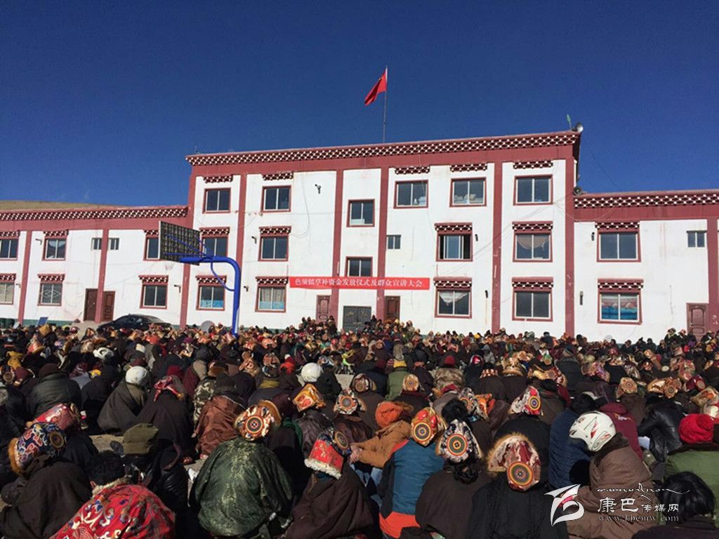 本網(wǎng)訊(高啟龍 文/圖)“‘十三五’規(guī)劃已謀定,你聽我來講一講;高中免繳學(xué)雜費(fèi),各位學(xué)子有希望;計(jì)生政策大改革,生育‘二孩’全開放……”2015年12月25日上午,天空雖然飄著雪花,但在石渠縣長(zhǎng)須貢瑪鄉(xiāng)政府院內(nèi),仍然聚集了很多群眾。他們?cè)隈雎犞∥枧_(tái)上兩位宣講員用藏語快板進(jìn)行的宣講。