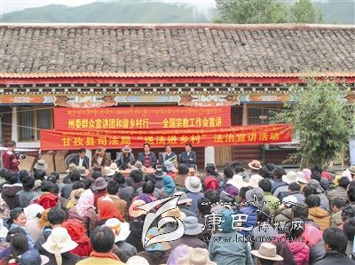 “法律七進”活動做到“動態(tài)普法,法隨人行”,在春耕田間地頭、蟲草采挖地點、發(fā)放惠民資金現(xiàn)場,寓教于樂、獨具民族特色的甘孜“普法模式”不斷推出,“法律趕集”、“法治講堂”、“法治長廊”、“模擬法庭”、“現(xiàn)身說法”,為群眾送上了一場又一場印象深刻的法治“套餐”。 “法律進鄉(xiāng)村”,深化了鄉(xiāng)村法治管理;“法律進機關”,強化了干部法治觀念;“法律進校園”,培育了學生法治意識;“法律進企業(yè)”,夯實了企業(yè)法治根基;“法律進社區(qū)”,擴展了社區(qū)法治視角;“法律進寺廟”增強了僧尼法治認同。