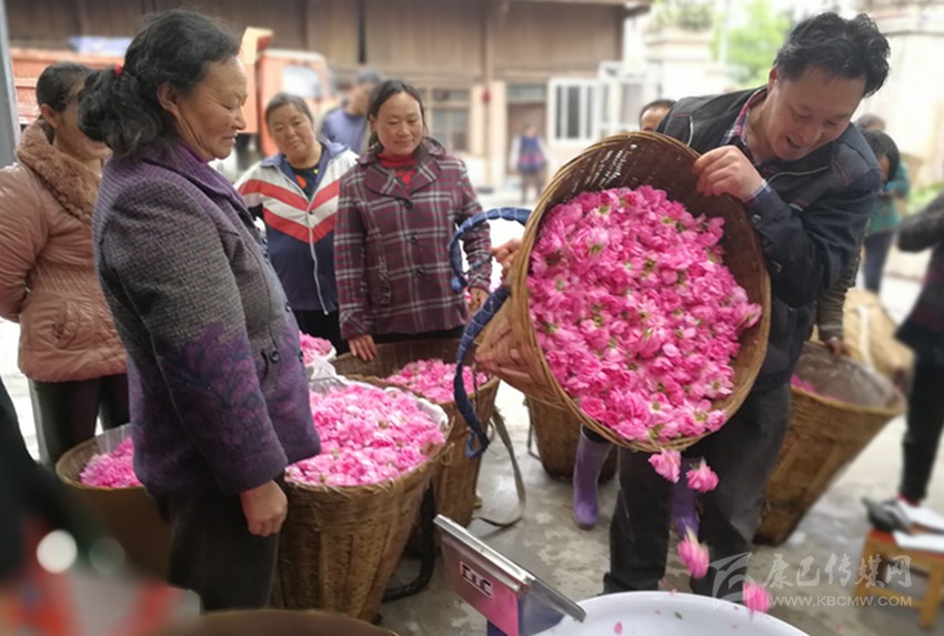 16日上午,小雨停了下來(lái),趕在太陽(yáng)出來(lái)之前采摘的玫瑰花出油率好,是采摘的黃金時(shí)間。在燕子溝鎮(zhèn)新龍門子村生產(chǎn)加工點(diǎn),周邊農(nóng)戶將采摘的粉色玫瑰花瓣過(guò)秤,逐筐倒進(jìn)特定的堆放地點(diǎn),農(nóng)戶們也收到了應(yīng)得的勞務(wù)收入,空氣中彌漫著一股玫瑰花特有的芳香和浪漫,也充滿了當(dāng)?shù)匕傩招腋:吞鹈鄣奈兜馈?/span>