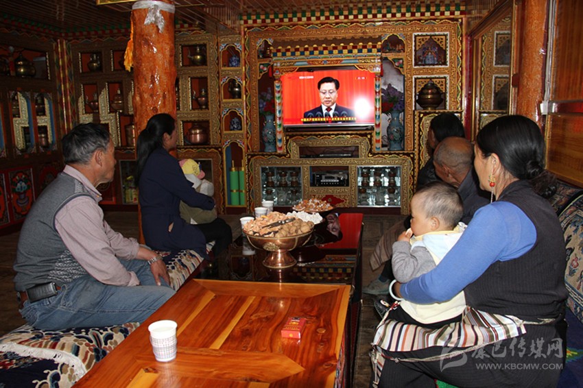理塘藏族群眾在家中收看省黨代會(huì)開幕大會(huì)直播。
