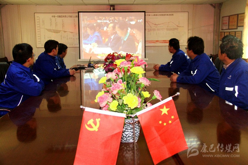 負(fù)責(zé)雀兒山隧道施工的中鐵一局干部職工正在收看開幕大會(huì)直播。