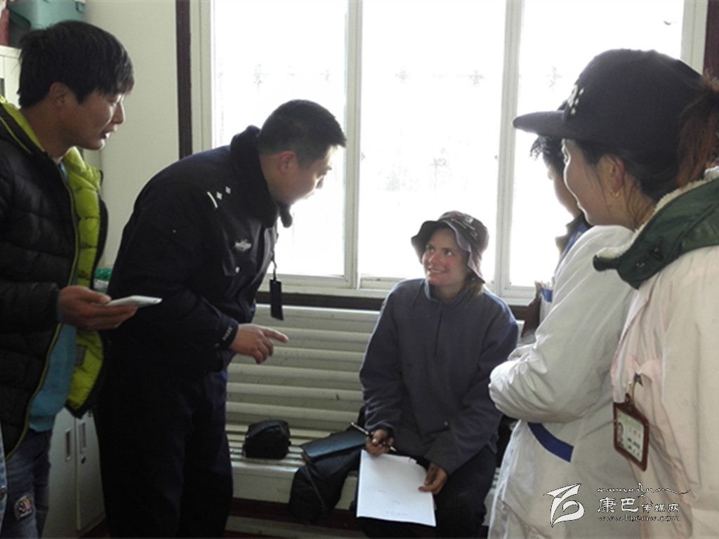 當(dāng)日中午12時(shí),開展完“結(jié)對(duì)認(rèn)親”工作返回桑堆鎮(zhèn)派出所集合的國(guó)保大隊(duì)民警和看守所民警,忽然看見一名神色疲憊的外國(guó)女游客推著自行車,正在派出所門前與民警比劃著什么?有一定英語基礎(chǔ)的民警見狀后圍了上去,主動(dòng)給派出所民警“解圍”。但是,她說的外語并不流暢,交流起來十分困難。經(jīng)過手勢(shì)比劃,加上多方英語對(duì)話,民警得知了她是比利時(shí)人,名叫ILONA,是一名資深的騎游愛好者,已騎自行車游覽了大半個(gè)中國(guó),準(zhǔn)備騎自行車回國(guó)。當(dāng)日正從稻城縣騎自行車出發(fā)前往理塘縣,但到了桑堆鎮(zhèn)后感覺身體難受,體力不支,難以繼續(xù)堅(jiān)持前行,就打算在當(dāng)?shù)卣乙粋€(gè)衛(wèi)生院先檢查身體。比利時(shí)人平時(shí)主要講的是法語,所以英語講起來有點(diǎn)不順暢。當(dāng)時(shí),國(guó)保大隊(duì)民警由于有其他要事在身,不得不先行離開,看守所民警蘇適英語水平不錯(cuò),便主動(dòng)帶她到鎮(zhèn)衛(wèi)生院看病。