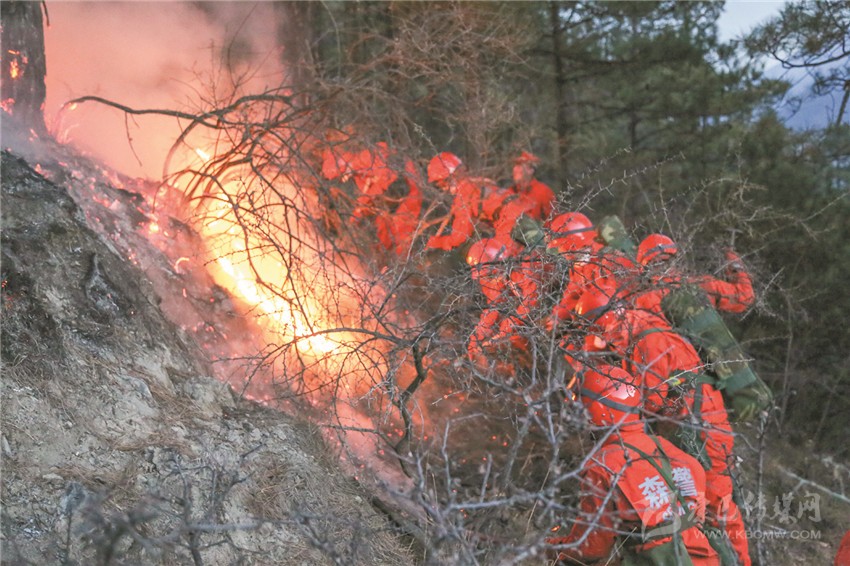火災發(fā)生后,武警甘孜森林支隊道孚大隊40名官兵迅速趕赴現(xiàn)場展開滅火工作。高原的夜晚氣溫雖然降至-14℃,但凜冽的寒風卻讓林火肆意蔓延,撲火官兵跟著火頭一路追擊,力阻火場面積擴大。19日凌晨,滅火官兵抓住清晨風力小、氣溫低的有利條件,向火魔發(fā)起進攻,殲火頭、撲余火、滅煙點、清火線,2小時30分鐘后完成了南線滅火作戰(zhàn)任務。隨后,道孚森林大隊官兵兵分兩路幫助地方專業(yè)滅火隊和撲火群眾清理煙點、站桿倒木。一路采取接力方式,采用水箱將山脊一處水源不間斷傳遞至火場一線,清理煙點;另一路運用油鋸、砍刀、組合工具對任務區(qū)戰(zhàn)桿倒木進行清理。
