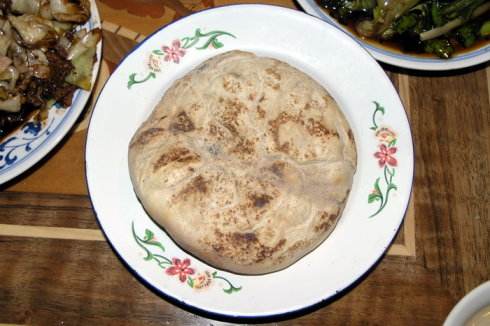 “鍋圈子”是在生鐵鍋里烘洋芋(洋芋用油鹽炒后加水),洋芋之上沿鍋壁貼一圈經(jīng)發(fā)酵后的呈環(huán)狀的面團,大火烘蒸,蒸出的饃呈環(huán)狀,質(zhì)松且?guī)а笥笙?,底有一層鍋巴?/p>