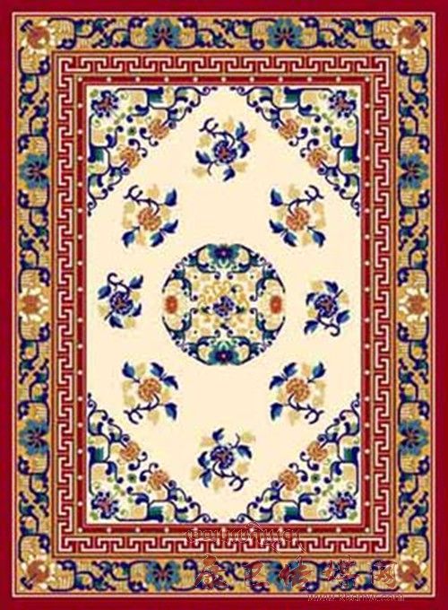 藏毯是植物染色,手工捻線,經(jīng)藝人的精心編織而成。它柔軟、耐用、美觀、大方,又有濃厚的民族特色,對生活在高寒地區(qū)的人們隔潮御寒、保溫取暖有重要作用。因些是長期在牧區(qū)生活所不可缺少的用品。它的品種,有地毯、炕毯、坐毯等。它是在藏族傳統(tǒng)藝術(shù)的基礎(chǔ)上,吸收、融合了漢族、印度和尼泊爾宗教藝人精華,形成具有自己獨特的藏族藝術(shù)風(fēng)格的工藝美術(shù)品。 傳統(tǒng)藏毯的藝術(shù)風(fēng)格,帶有濃厚的宗教色彩,如佛八寶、暗八仙、國王七寶等。佛八寶即法輪、法螺、寶傘、寶蓋、荷花、寶罐、雙魚、盤花;暗八仙屬漢道教文化即寶劍、寶葫蘆、漁鼓、陰陽板、仙笛、寶扇、花籃、荷花;國 王七寶也稱怵寶,屬印度佛教文化,即方勝、連環(huán)錢、犀角、令牌、象牙、珊瑚、珠寶。還有漢文化的琴棋書畫和梅蘭竹菊等。這些內(nèi)容既展示了人們的勤勞智慧和精神力量,也體現(xiàn)出人們對美好未來的期待、愿望和幻想。藏毯的表現(xiàn)形式以傳統(tǒng)式為主,還有自由式、龍鳳式及隨品種形式不同的構(gòu)圖形式。色彩表現(xiàn)方面尤為豐富,顏色艷麗、純度高、對比強(qiáng),色彩構(gòu)圖穿插靈活,與藏族建筑彩畫的裝飾風(fēng)格一脈相承。
